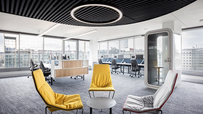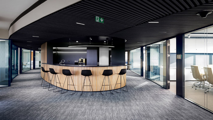 信托公司以信任委托為基礎,設計師在辦公室設計中,以信任、現代化、簡潔為辦公室設計關鍵詞,目的就是希望營造一個以信任為基礎的辦公空間。