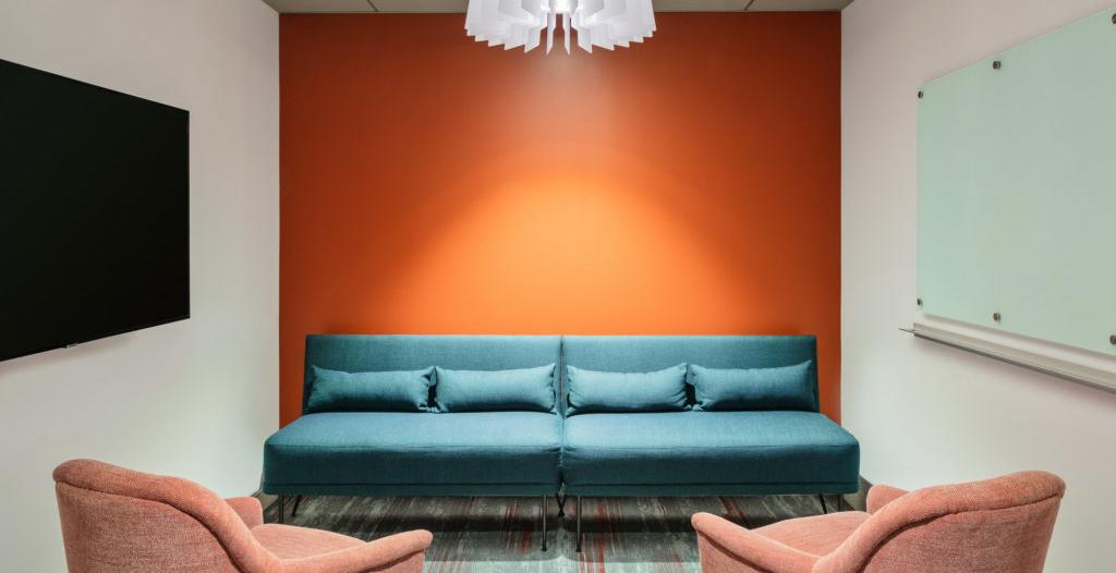 解放開放辦公工作站區(qū)域的周邊,同時(shí)在更封閉的建筑上實(shí)現(xiàn)玻璃正面,沒有留下任何一個角落。一個值得注意的特點(diǎn)是,從空間的核心到辦公區(qū)域,以對比地毯作為伴奏,以慶祝視覺興趣。