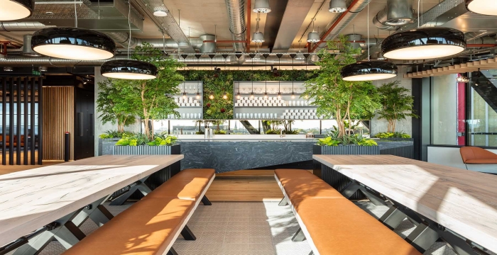 整體的設(shè)計就是將生活與工作相容,為員工提供更好的便利,一個充滿活力的辦公室空間增添了波普藝術(shù)作品中的一些自然元素作為裝飾,搭配家具的使用,柔和原始建筑的粗糙感,整個空間設(shè)計的非常有活力,正是對公司理念:“更好的工作、更好的生活”相呼應(yīng)。
