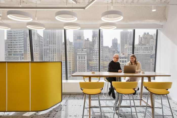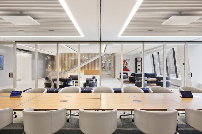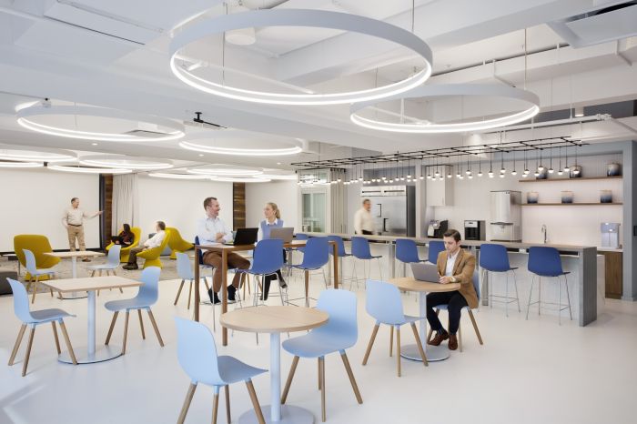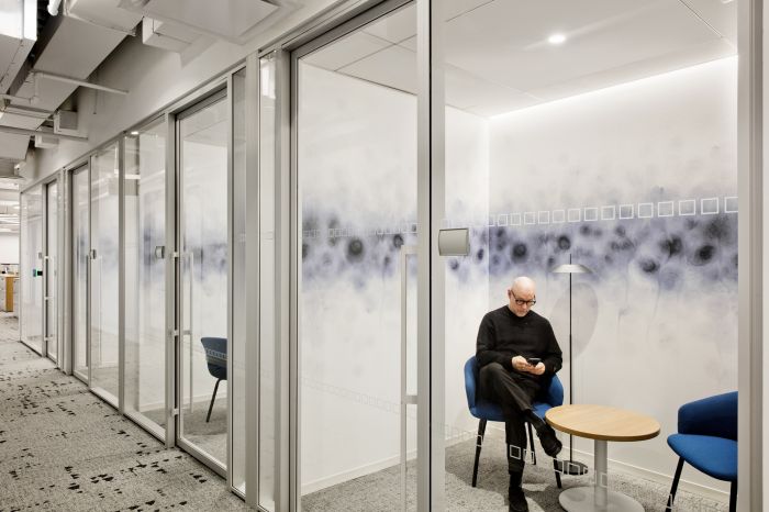 協(xié)作區(qū)域分布在辦公區(qū)和私人辦公室中,以創(chuàng)建通向多個體驗(yàn)區(qū)域的路線。這包括音樂室、冥想室和休息室等空間,所有空間都是為健康而設(shè)計,旨在改善員工的工作方式。