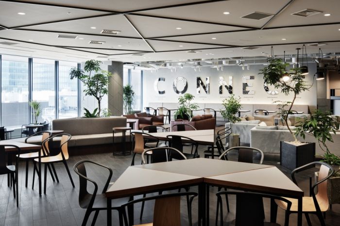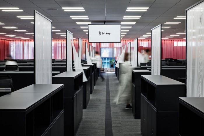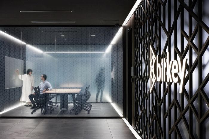 Bitkey公司總部位于東京京橋區,是基于自主分布式系統的獨特數字秘鑰技術——Bitkey平臺的服務商。設計以Bitkey的標識為靈感,該標識通過簡單的三角形組合象征無限的世界。這一概念在項目的平面設計和家具配置中都得到了呼應。此外,通過在辦公室內堆疊透明的標識圖案,創造出具有無限圖案的結構,人們可以在其中自由行走。這種布局是Bitkey交叉工作方式的空間表達,交叉的工作職責促進了員工創新。該辦公室是使用Bitkey技術對整個建筑進行數字化改造并行項目的起點。