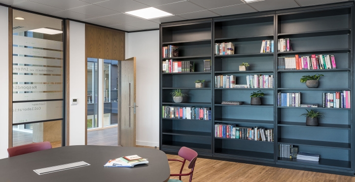 采用了主動式設(shè)計,可通往一樓的餐飲區(qū)。我們還確保認真實施所有照明和通風(fēng),以最好地滿足作為一家技術(shù)公司的特定需求,并為他們留出空間來安裝自己的自定義視聽功能。