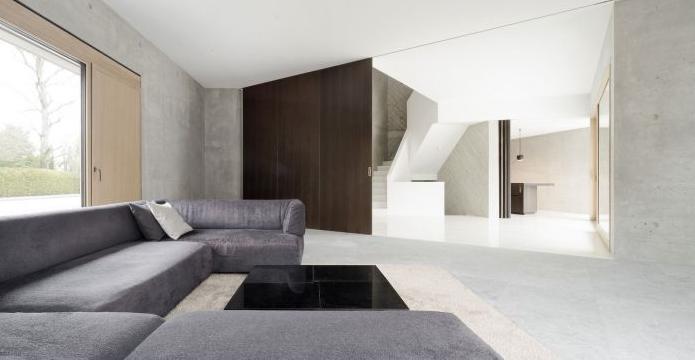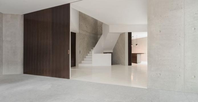 L 形狀別墅是一個同時包括辦公區域和公寓區域的單戶住宅,它被雕刻成一塊巨大的混凝土石,看起來就像是內外都是混凝土,而沒有任何隔斷和涂層。