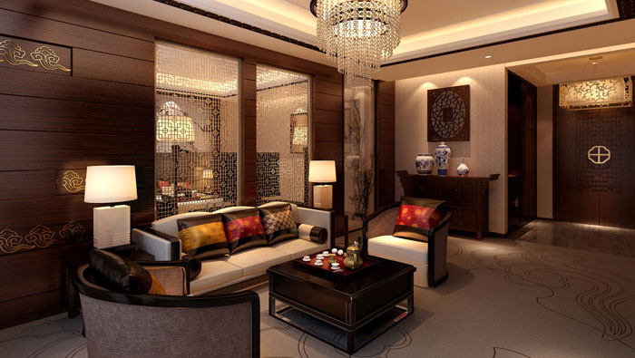 設計理念:室內設計中,設計師將古典的壁畫與現代的吊燈與低垂的竹簾處處協調,將濃重的顏色宣泄到底,張揚到極致,其結果反而出奇的和諧,紅和金的富麗感無可匹敵,也讓人盡情沉醉于中國風的視覺盛宴中。