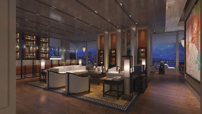 酒吧的設(shè)計:此處類似一個小型的酒吧,此處位于空間的深處,當(dāng)夜幕落下之后,客戶透過落地窗看到的是美麗的夜景,設(shè)計師在設(shè)計中,重點在于強調(diào)角度的變化,在設(shè)計師看來繁星點點充滿了人對于星空的憧憬與好奇,有利于保持客戶求知的心態(tài),故此設(shè)計師希望繁星點點的景色,可以激發(fā)客戶心中久違的斗志。