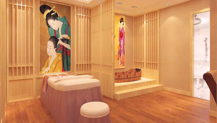 混搭風格美容院日式的SPA間日式的浮世繪的刺繡裝修設計案例效果圖