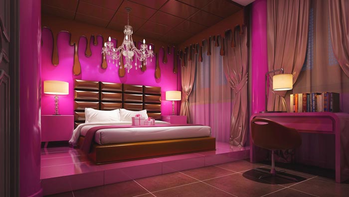 特色情侶酒店少女閨房裝修設計案例效果圖
