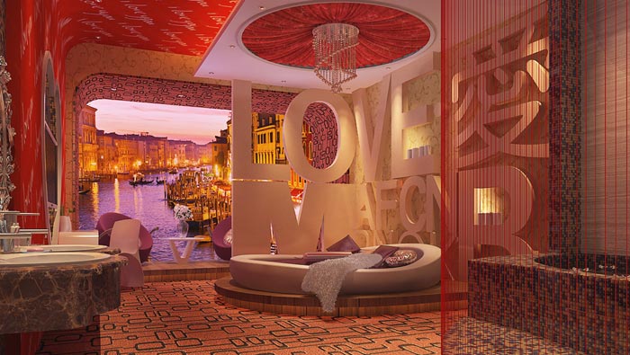 情趣客房的設計:這樣的客房酒店只有2間,主要也是為了嘗試、或者說是試驗,設計師設計的目的也是為了兼具以得,同時設計師也強調這樣的房間不宜過多,由于文化的不同,此處也是在設計師的修改之下完成的,含蓄的美遮蓋住空間原本的含義,讓人更容易接受。
