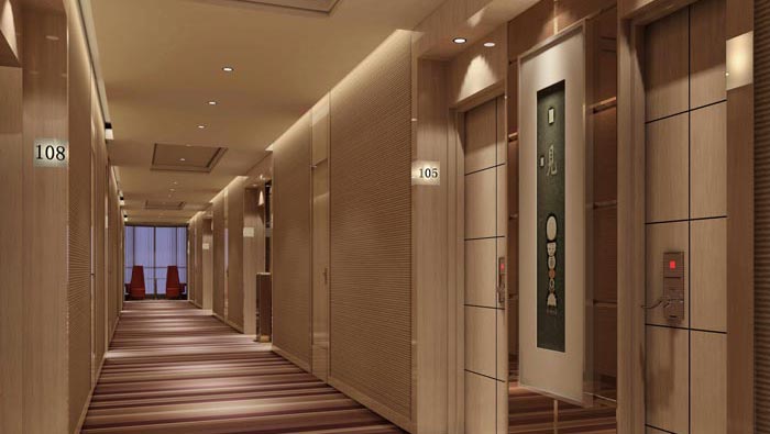 走廊的設計:我們在此處第一眼看到的就是房間標志,這也是設計師特意為之,因為在設計師看來,酒店的優點是大而全,但是缺點就是房間過多,會讓顧客感受無所適從,在尋找房間的過程中會遇到很大的阻力,這也是現在酒店設計中都會注意的一點,此處設計師采用柔光與空間的對比,讓顧客可以輕松的知道自己在那里,讓客戶不會迷失。