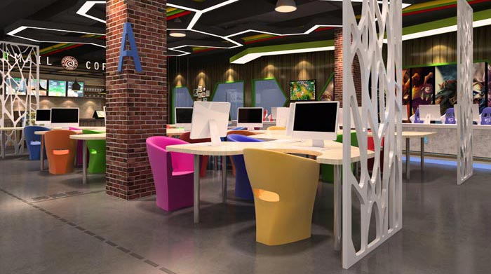 設(shè)計(jì)理念:設(shè)計(jì)師在藍(lán)月亮網(wǎng)咖裝修設(shè)計(jì)的時(shí)候,經(jīng)過(guò)和業(yè)主的多次交談,了解到業(yè)主希望可以將網(wǎng)咖打造成愉悅空間。