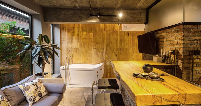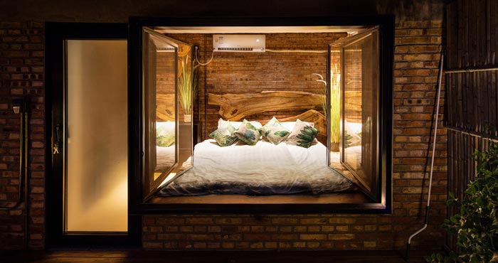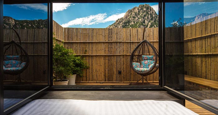 本案為鄉(xiāng)村民宿改造項(xiàng)目,定位于“微度假”的精品民宿,設(shè)計(jì)師首先平衡周邊的生態(tài)環(huán)境,在增加房間的采光量的同時(shí)。保證其私密性,提升客房的舒適度。