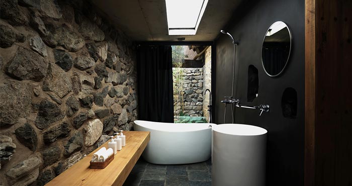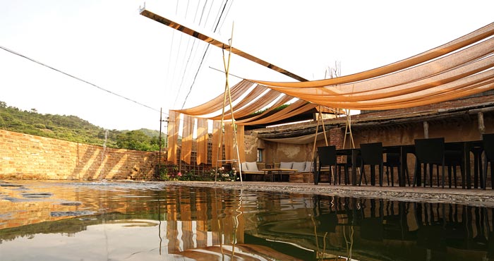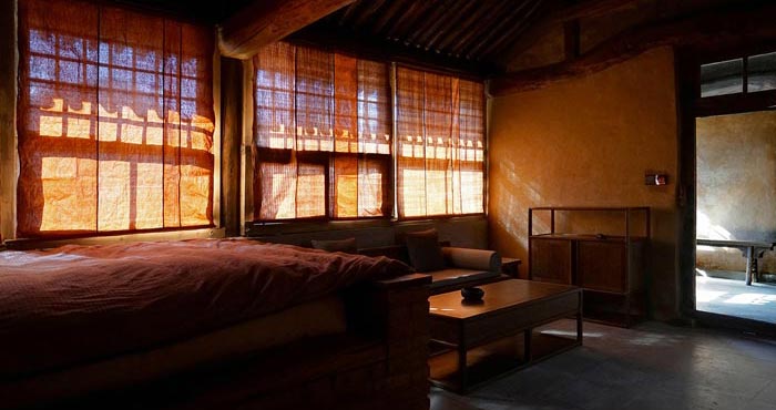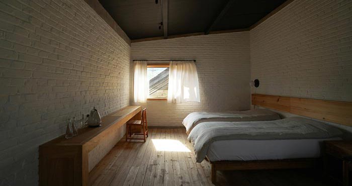 本次為農家民宿裝修設計項目,周圍群山環(huán)繞,山泉水從門口流過,設計師在設計中小心翼翼,目的就是調和設計與環(huán)境的互補關系。
