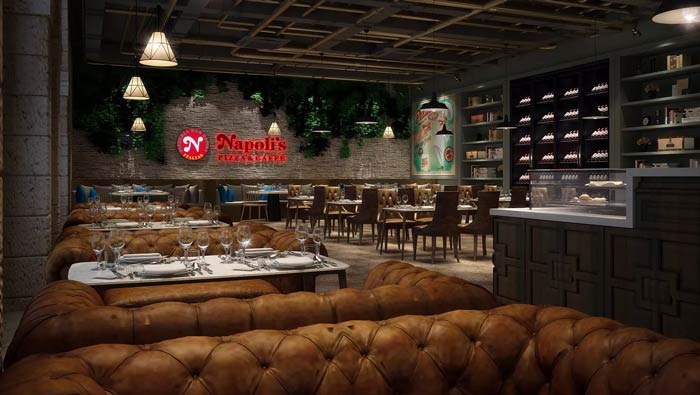 披薩西餐廳餐區(qū)裝修設計:安靜、愜意的就餐環(huán)境,是餐廳的競爭優(yōu)勢之一,這里適合就餐、休息、交流,之所以融入這樣的屬性,是希望打開更多的市場,讓空間可以多元化。