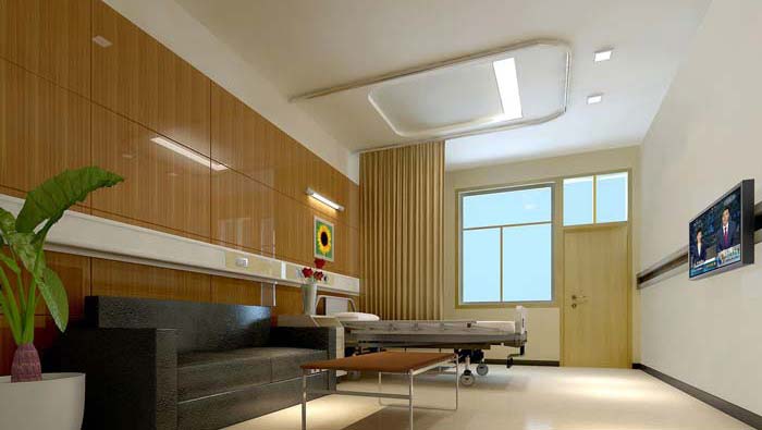 一號病房樓與新建的二號病房樓內設豪華間、二人間、三人間,房間內配備有空調、中心供氧、中心吸引、電話呼叫、衛生間、壁柜、靠背床等,設施齊全,達到了三星級賓館標準,環境優美、安靜舒適,為患者提供了良好的修養和治療條件。