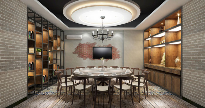 自助餐飲設計:中式復古自助餐廳裝修設計案例