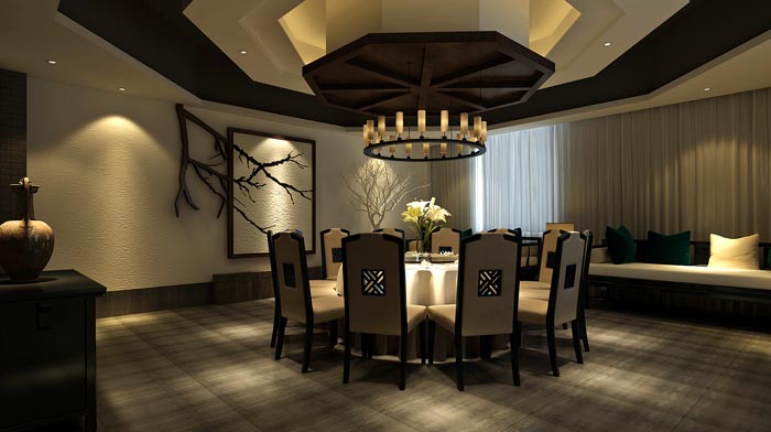 設計理念:設計師在現代中式風格中餐廳裝修設計的時候,秉承為顧客營造一個時尚、舒適、又不失文化底蘊的就餐環(huán)境為中心點。