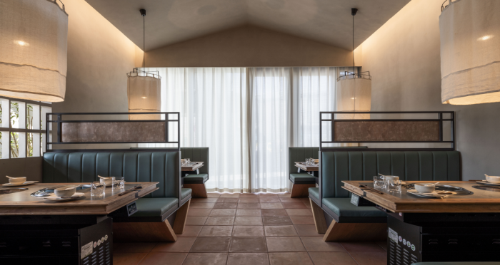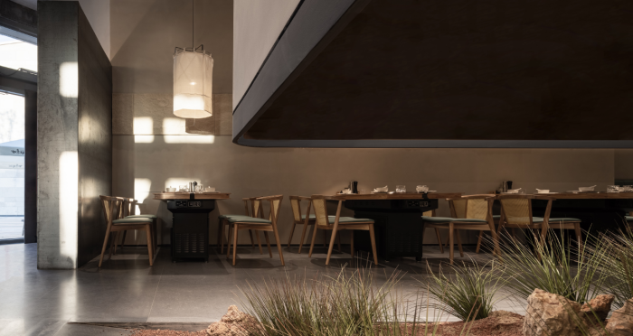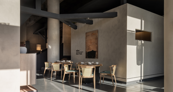 這是“侘寂煙火-如熹RUXI”餐廳的設(shè)計(jì)理念和品牌故事。餐廳以打邊爐為核心,強(qiáng)調(diào)“侘寂”美學(xué)的孤寂與市井煙火的對比。設(shè)計(jì)師通過將空間化零為整、打通室內(nèi)邊界,營造出人與自然之間的深層關(guān)系。空間設(shè)計(jì)以“侘寂煙火”為主題,運(yùn)用開放界面和透明封閉界面,將自然光引入作為主要照明方式,創(chuàng)造出豐富的光影韻律。設(shè)計(jì)希望通過空間的沉浸感讓食客放松下來,享受當(dāng)下。整體空間設(shè)計(jì)質(zhì)樸自然,融入了水墨元素,增加了調(diào)性和趣味性。通過在“侘寂”中感受人間煙火氣,設(shè)計(jì)希望重新尋找通往松弛和諧的理想生活。