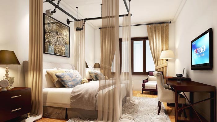 雙人間的設(shè)計(jì):此處給人最溫柔的就是地面柔柔的地毯,在這里客戶(hù)可以赤足在屋中走動(dòng),讓大家感受到赤足而走的感受,設(shè)計(jì)師希望讓大家明白,自己有多少時(shí)間沒(méi)有好好的放縱一下了,自己有多少時(shí)間沒(méi)有為自己好好活著了,人生本身是美好的,設(shè)計(jì)師希望我們?nèi)フ龑?duì)他。