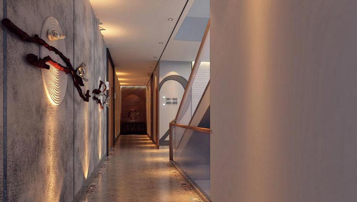 過道的設(shè)計(jì):對(duì)于過道設(shè)計(jì)師一直都有一個(gè)設(shè)想,難道過道就只能是一成不變,難道不能有一點(diǎn)點(diǎn)改變嗎?這次設(shè)計(jì)師在此處做了一次嘗試,經(jīng)過無數(shù)次的設(shè)計(jì)結(jié)果是喜人的,設(shè)計(jì)師在其中加入了文化的氣息、與燈光的元素,目的就是讓客戶在酒店處處感受到文化的氣息,讓每一次都充滿新意。